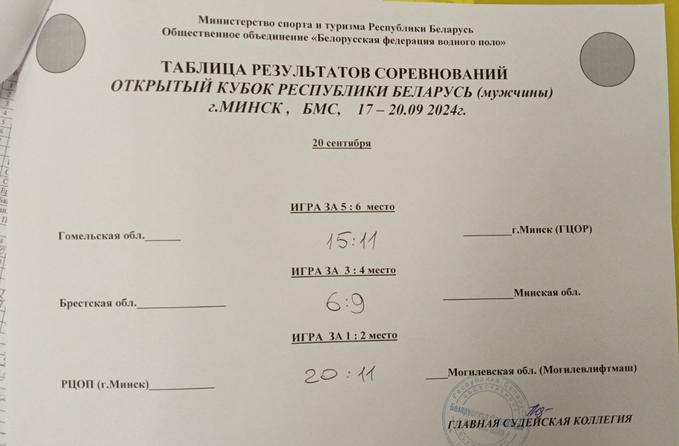 20 сентября 2025г. завершился Открытый кубок РБ по водному поло 2025 по водному поло среди мужчин.