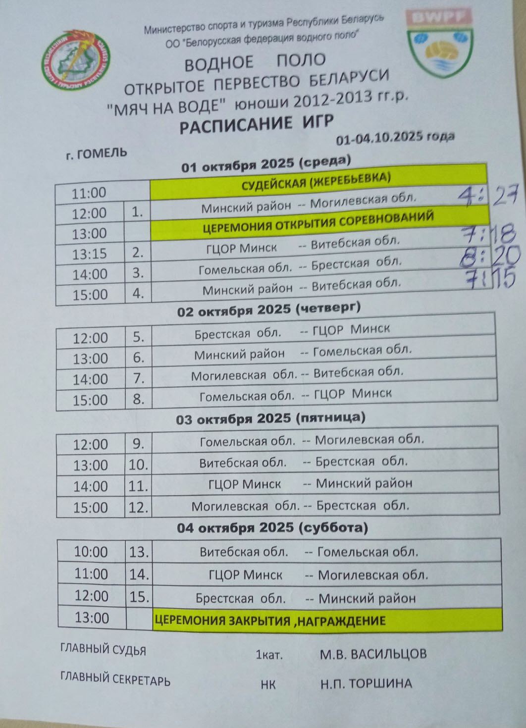 Результаты первого игрового дня Открытого первенства РБ по водному поло "Мяч на воде 2025"